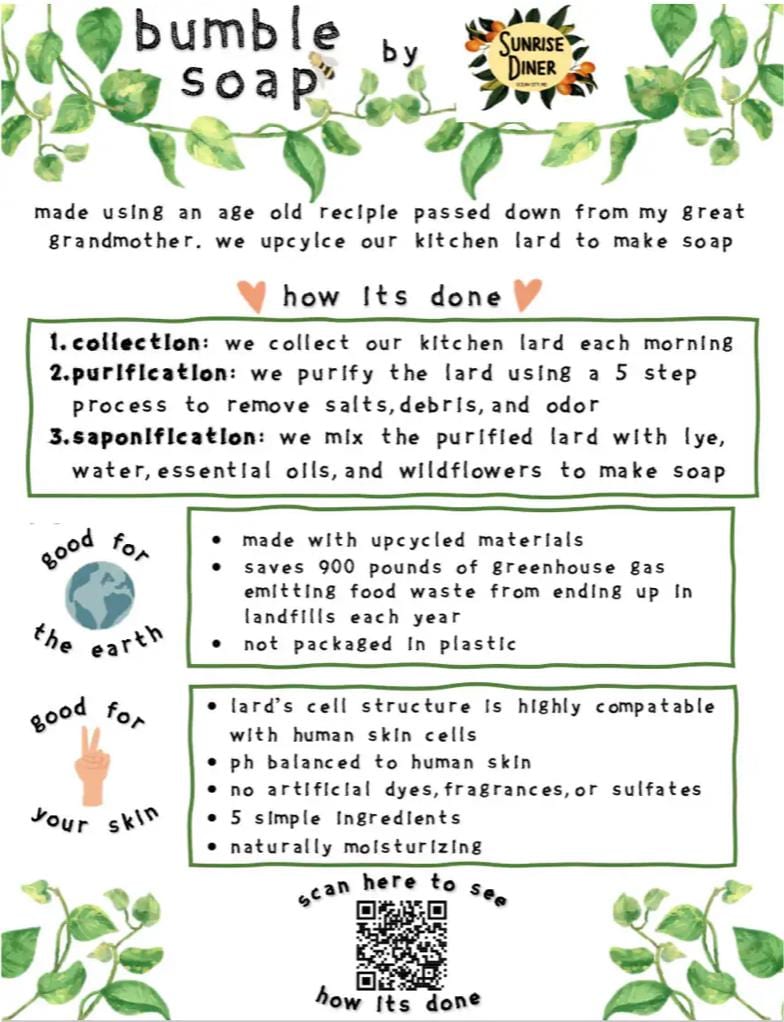 By making this soap, Sunrise Diner in Ocean City MD saves over 900 pounds of greenhouse gas emitting food waste from ending up in landfills each year.