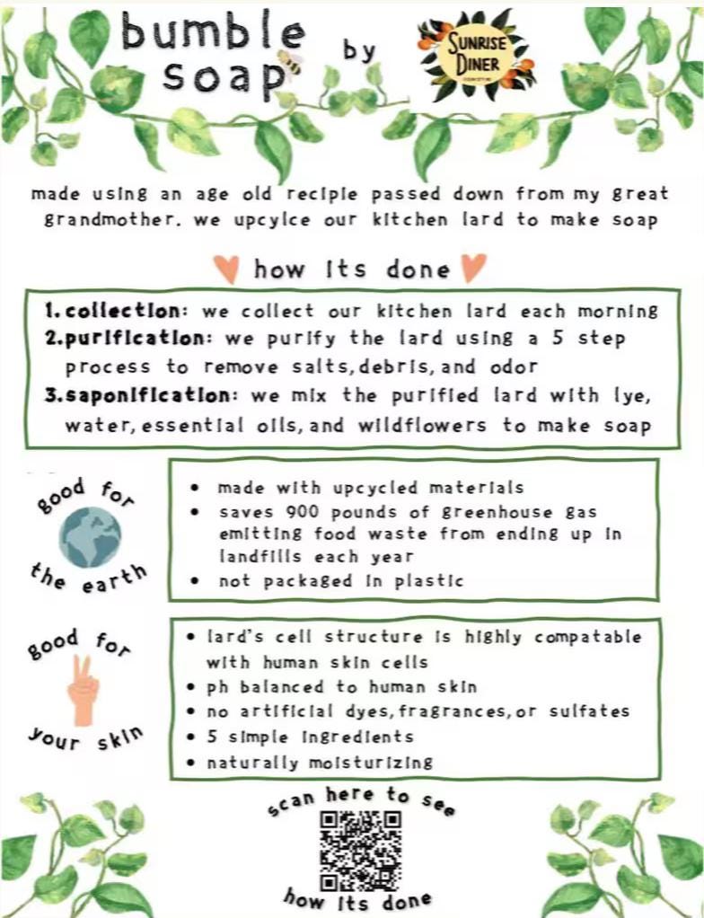 By making this soap, Sunrise Diner in Ocean City MD saves over 900 pounds of greenhouse gas emitting food waste from ending up in landfills each year.